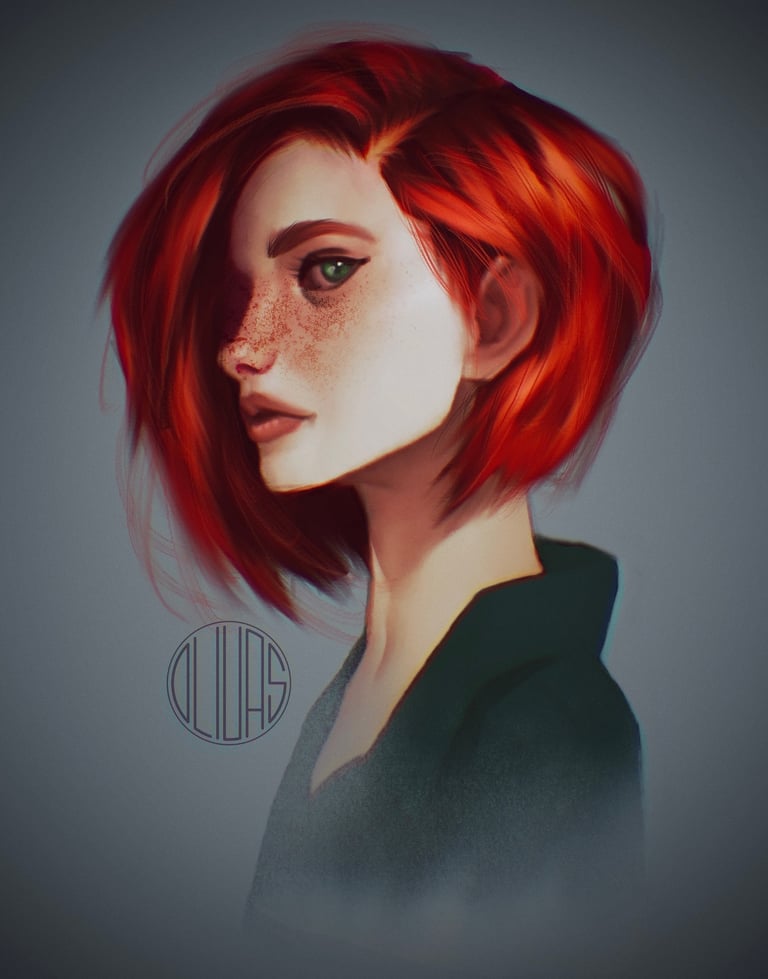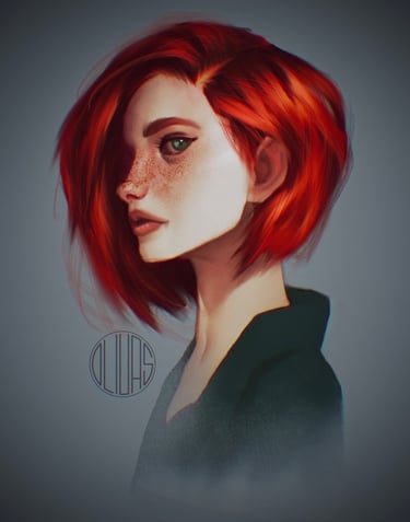 This portrait captures the striking presence of a young woman with radiant, fiery red hair. My primary goal was to draw the viewer’s eye to the vivid beauty and natural texture of her hair—its warmth, movement, and intensity. Through this piece, I aimed to celebrate not just her outward beauty, but the bold elegance that her hair embodies.