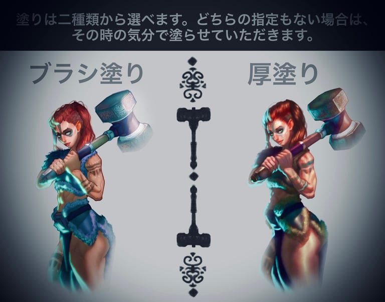 Character style mockups for Tommy Walker Co. this is a very simple design, the main focus are the two different styles of render. The Left side displays more linear, flat colors with simple shading and rim light. The Right side displays more painterly style with complex colors, and complex light and shadow render. I really enjoyed the process for both styles, however, I usually go with a painterly style when my customers leave the style option up to me.